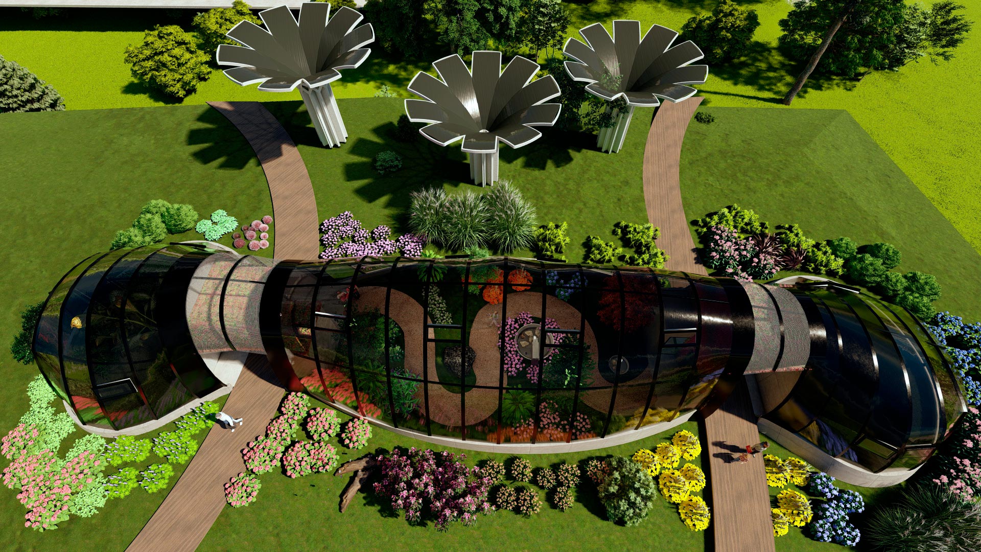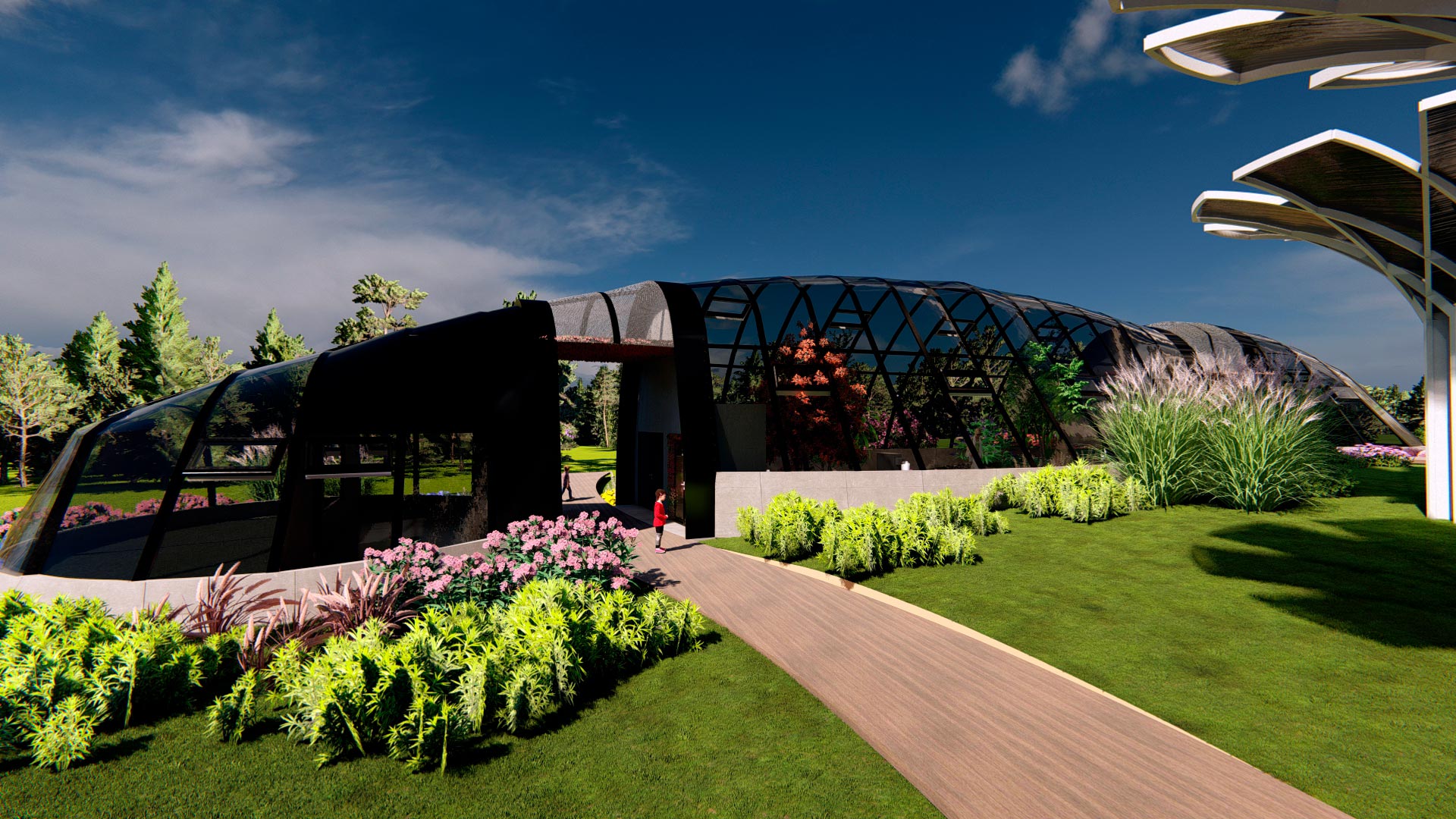 - La edificación se basa una crisálida en formación, donde se generan 3 espacios indispensables para un mariposario, distribuidos en 327.00 m2 de construcción.